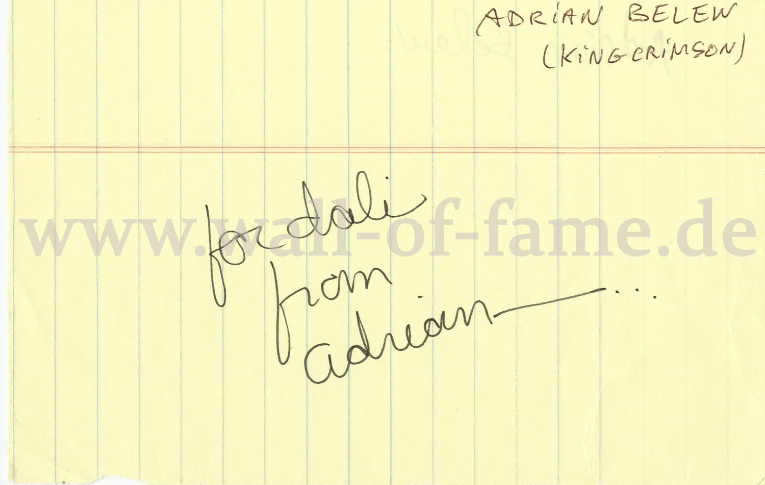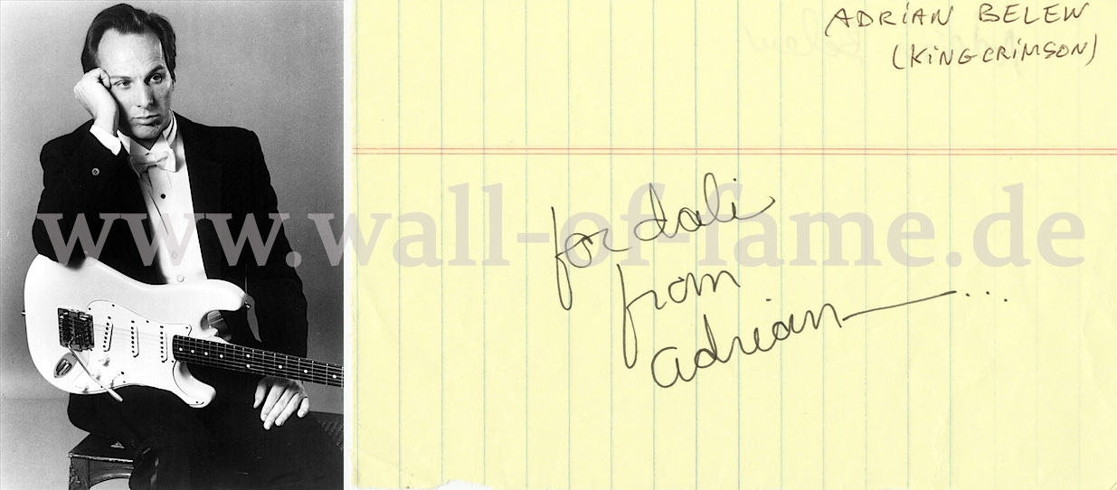 Nice autograph of Adrian Belew, not only member of King Crimson but sideman of Frank Zappa, Paul Simon, David Bowie ao., EUR 45,-