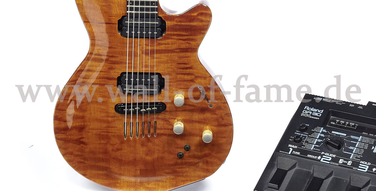 Godin LGX Guitar from the private property of Gary Moore, maple top with mahagony body. Played on the album “A Different Beat”. Comes with original Godin box and additional Roland GR-30 synthesizer, EUR 13500,-