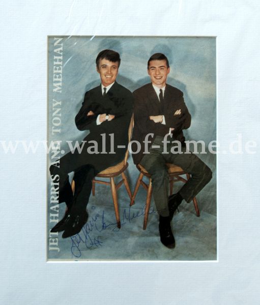 Signed colour photo of the instrumental duo Jet Harris and Tony Meehan, formerly members of the Shadows, blue biro. Mounted, 26 x 31 cm. EUR 65,-