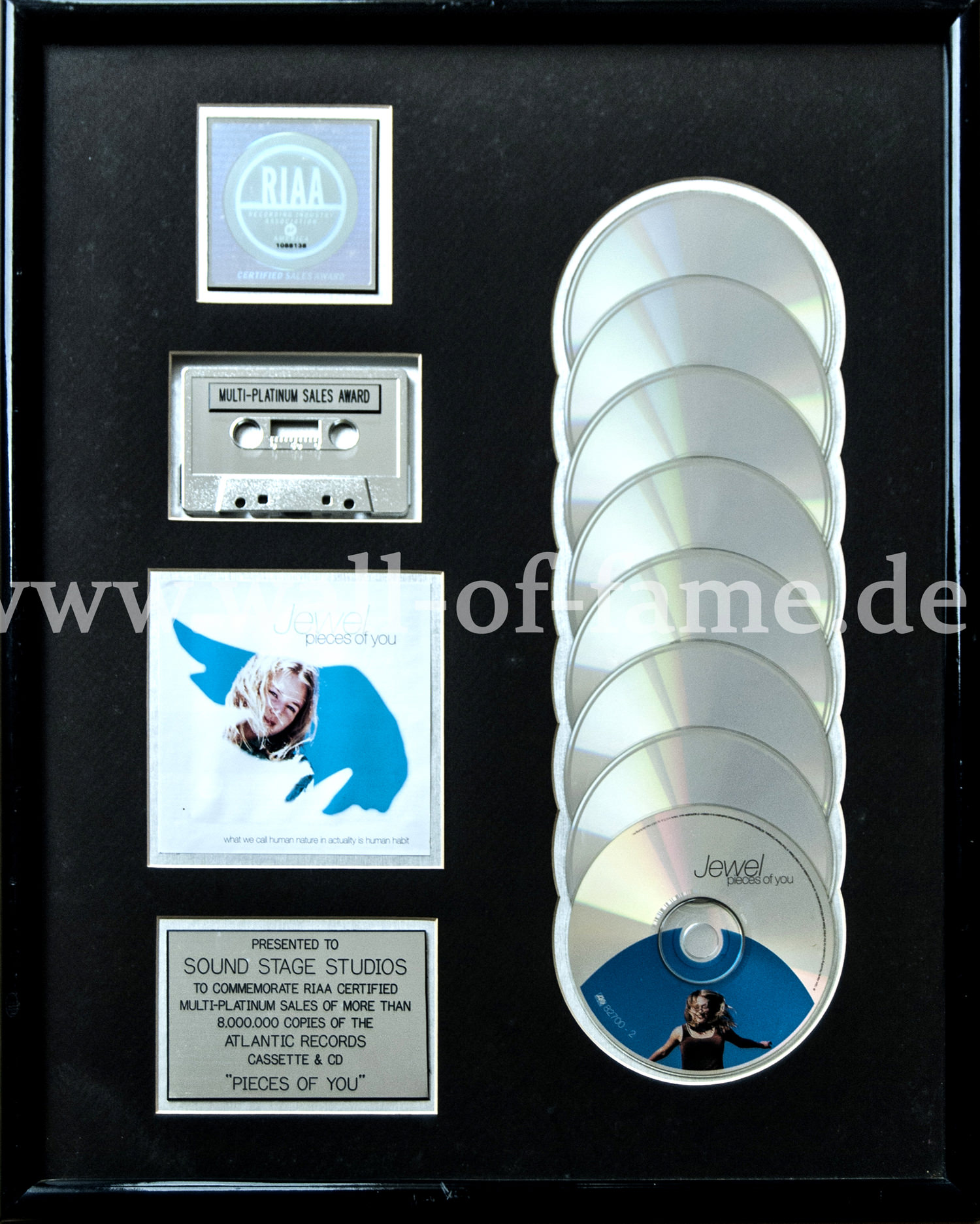 An RIAA “multipatinum” record award, presented to Sound Stage Studios to commemorate the sale of more than 8 million copies of the Atlantic Records album Pieces Of You in the United States EUR 250,-