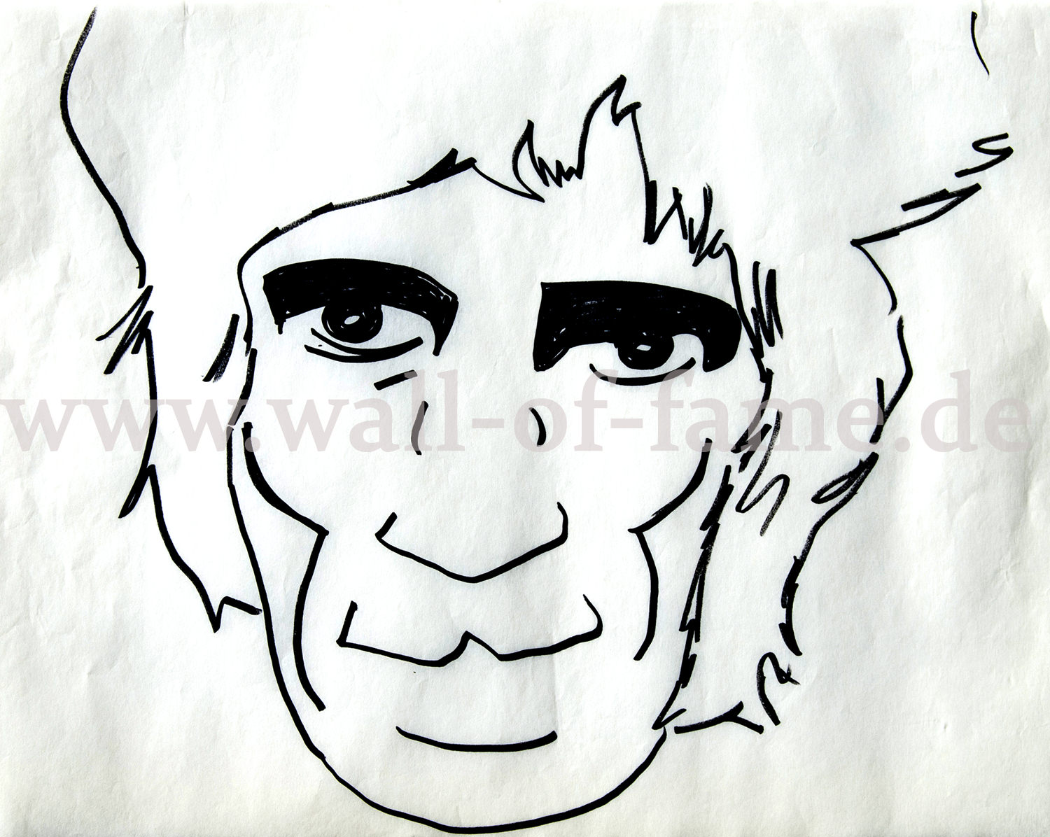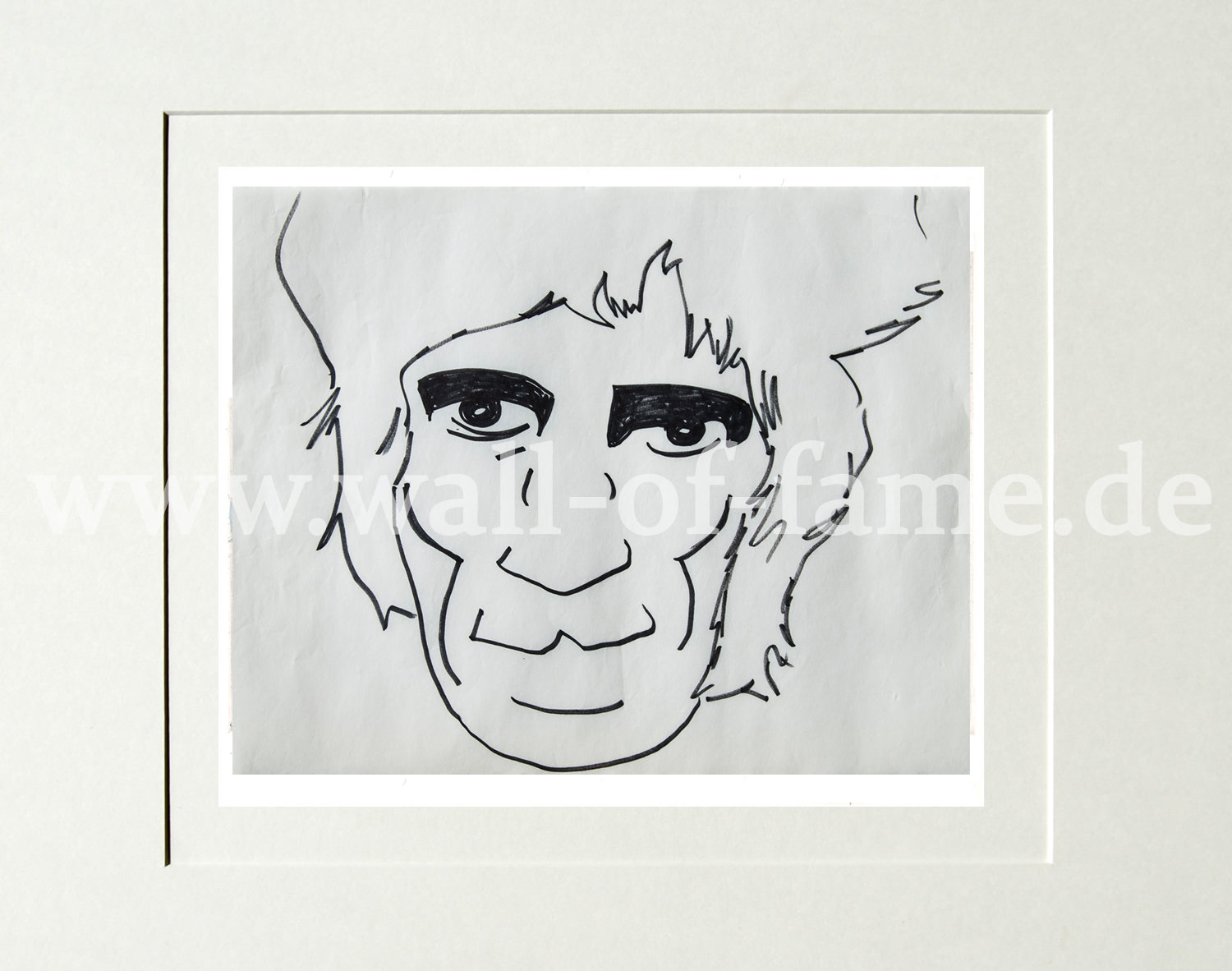 Drawing of Keith Richards by John Entwistle. One of John Entwistle very collectible drawings, cartoon style, size 42 x 30 cm, price without frame, EUR 980,-