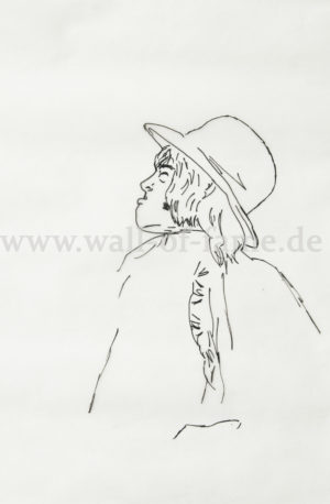 The drawing on tracing paper shows the portrait of Brian Jones with a hat. John Entwistle, not only one of the best rock bassists ever, but also his drawings and caricatures show his artistic talent in this field. 30 x 41 cm. With framing on request, EUR 3200,-