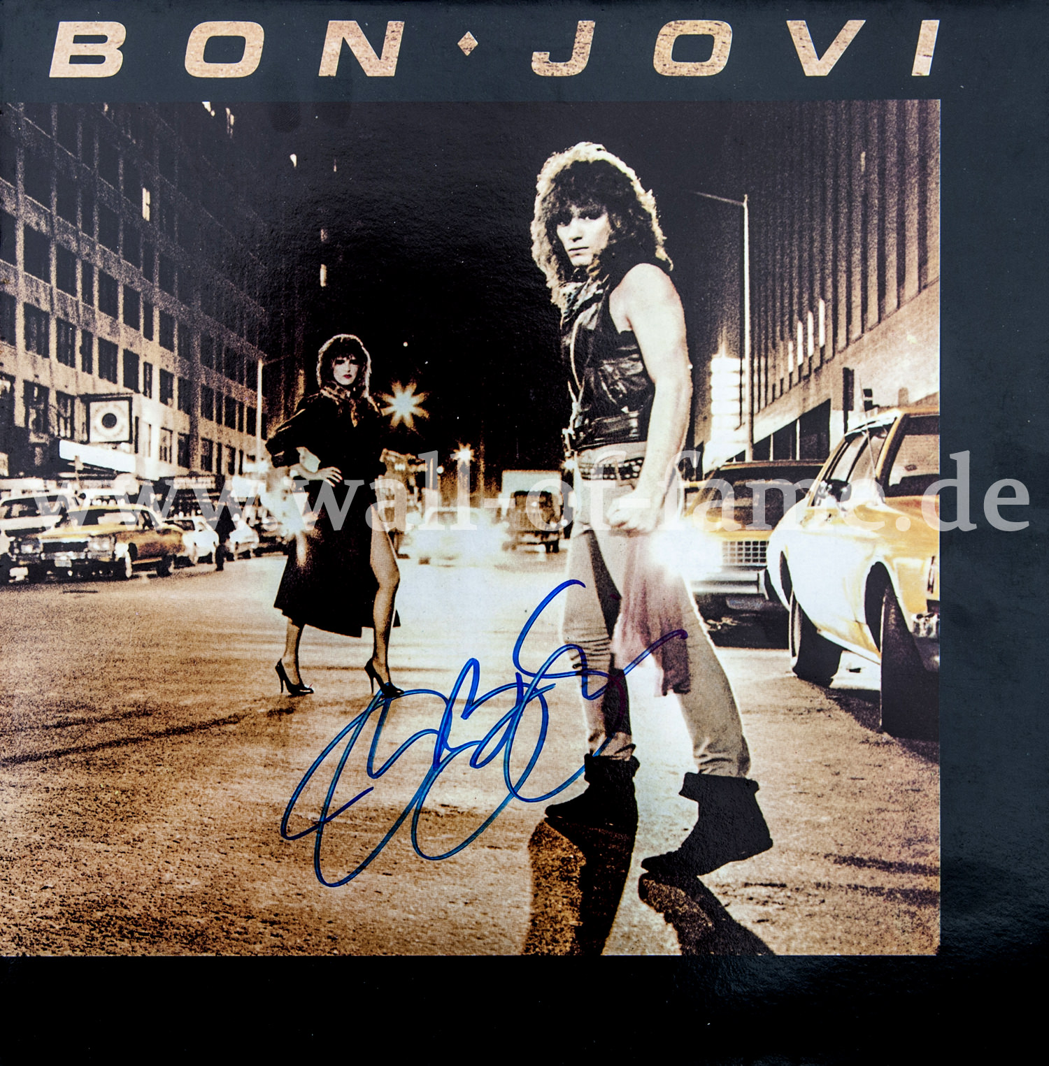 Albumcover “Bon Jovi” signed by Jon Bon Jovi. Signature by Jon Bon Jovi w/ blue feltpen. EUR 165,-