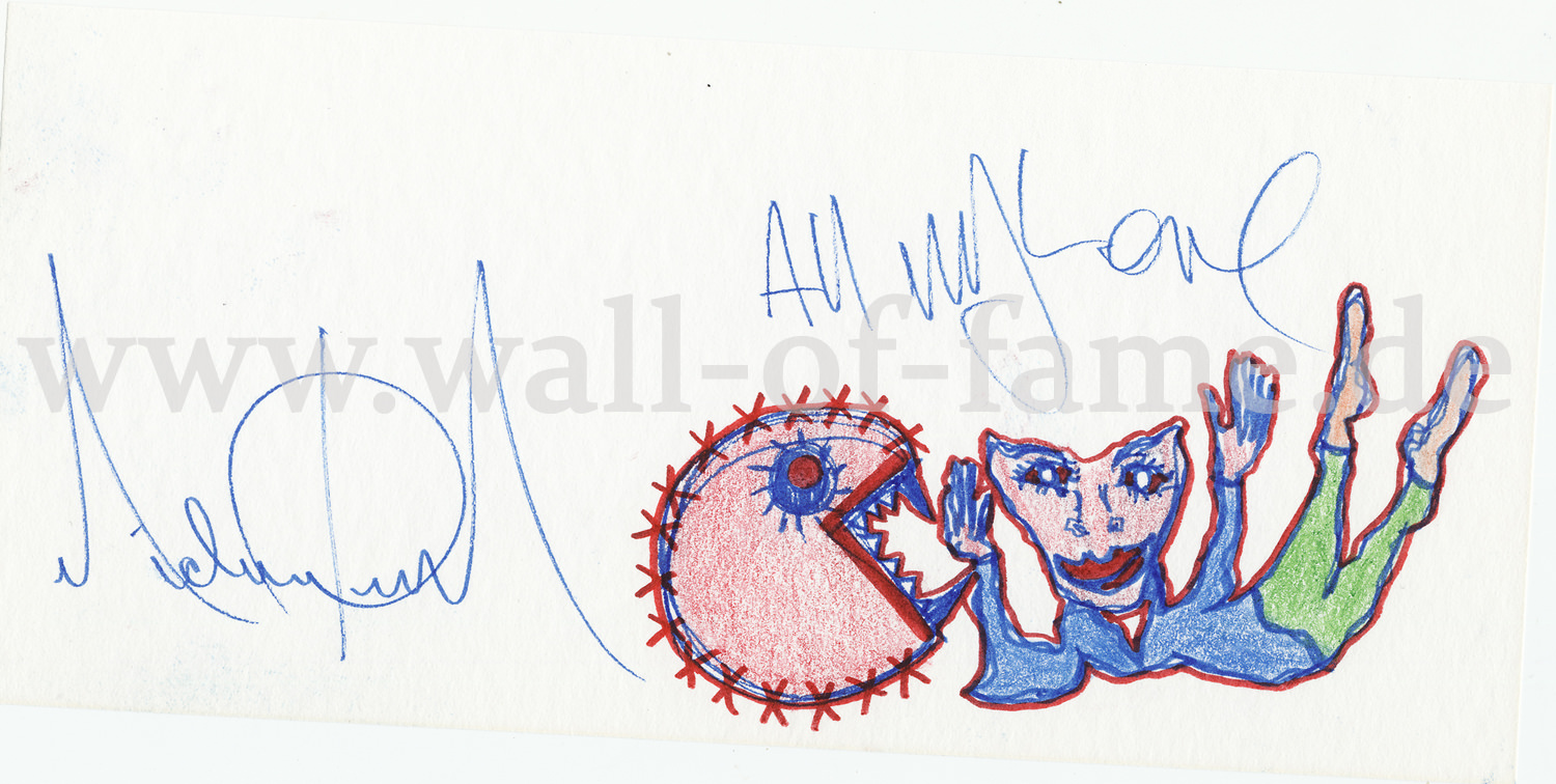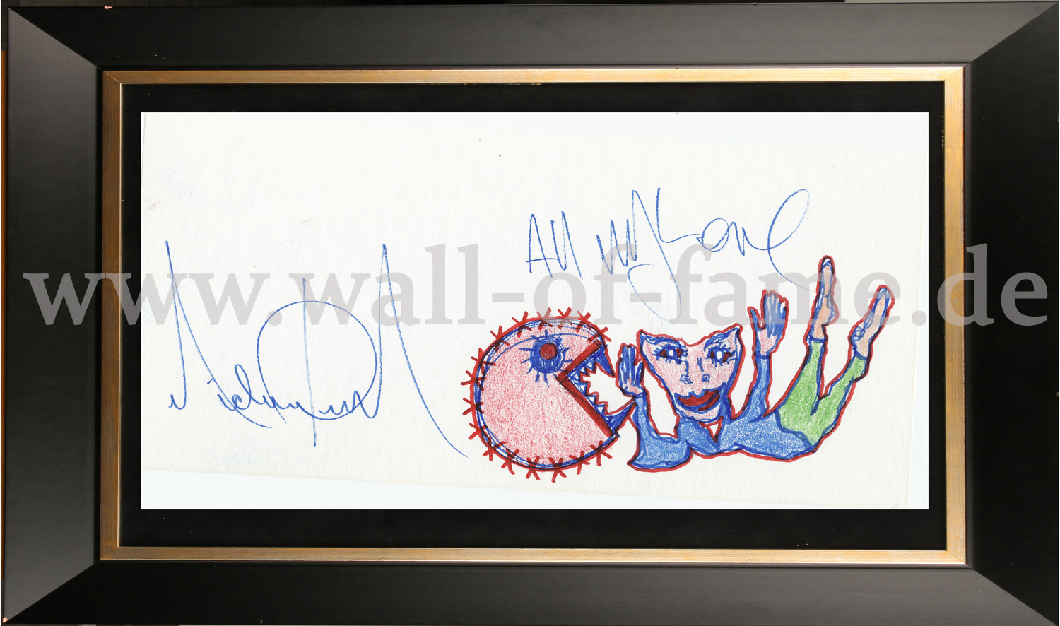 Michael Jackson has hand drawn this colour picture that he has also signed and inscribed “All My Love, Michael Jackson” in blue ink on white paper, signed, 8,5 by 4 cm, with a frame on request, EUR 3800,-