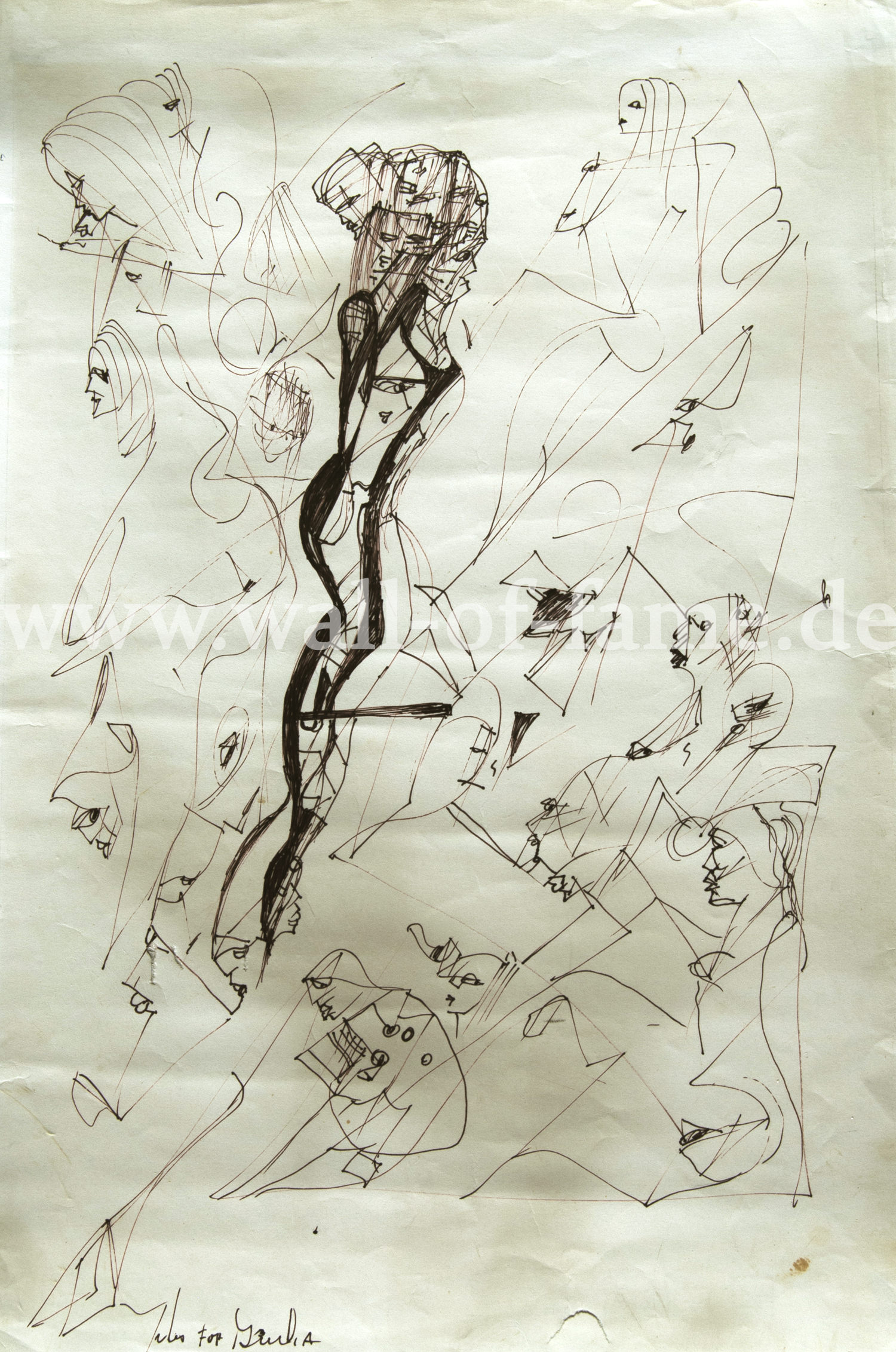 Miles Davis sketch, typical style, brown pencil, signed “For Giulia”, Large format drawing (46x32cm), EUR 1750,-