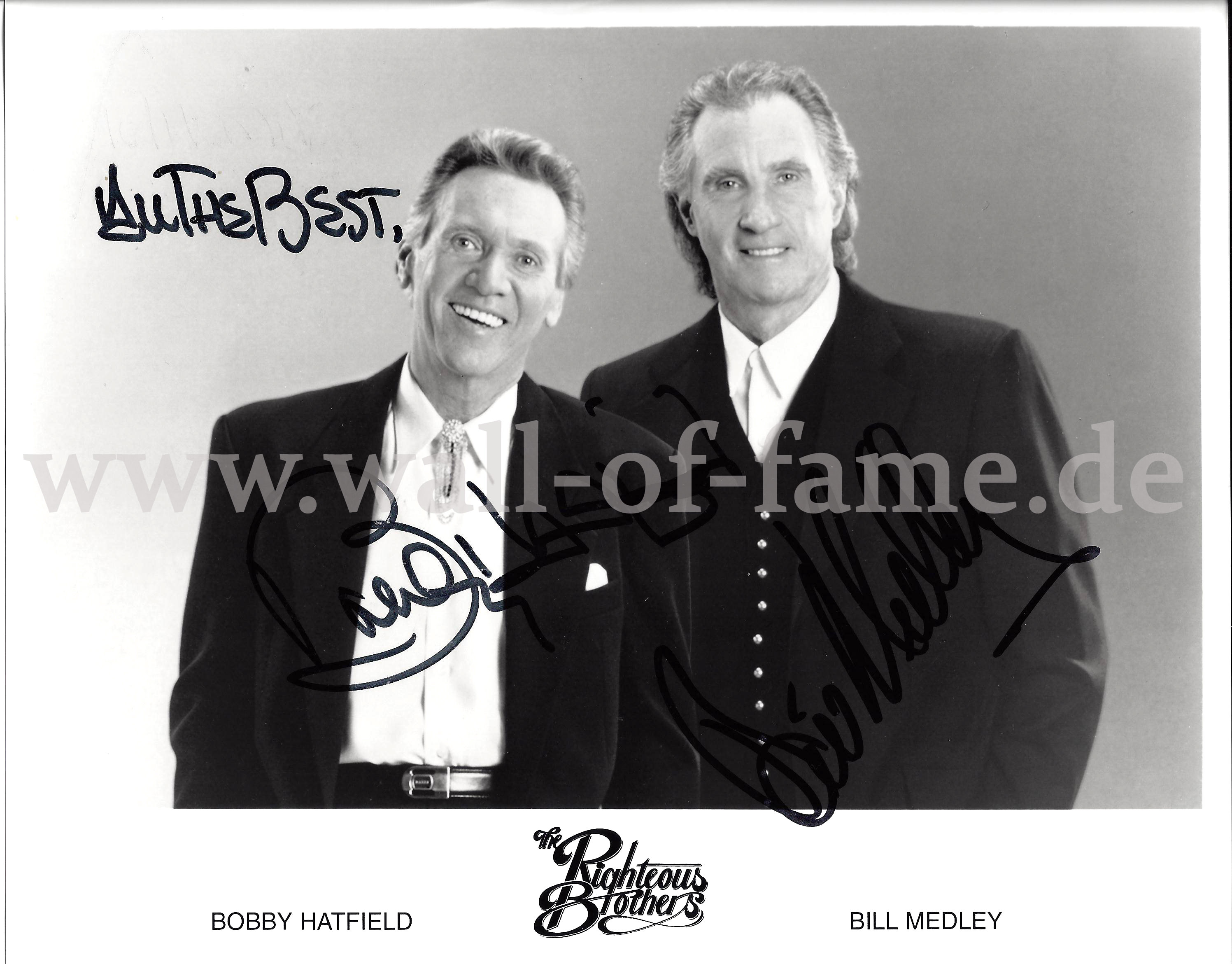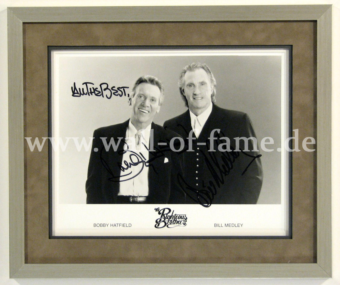 Framed b/w glossy photo signed by Bobby Hatfield and Bill Medley, 35 x 29,5 cm, EUR 175,-