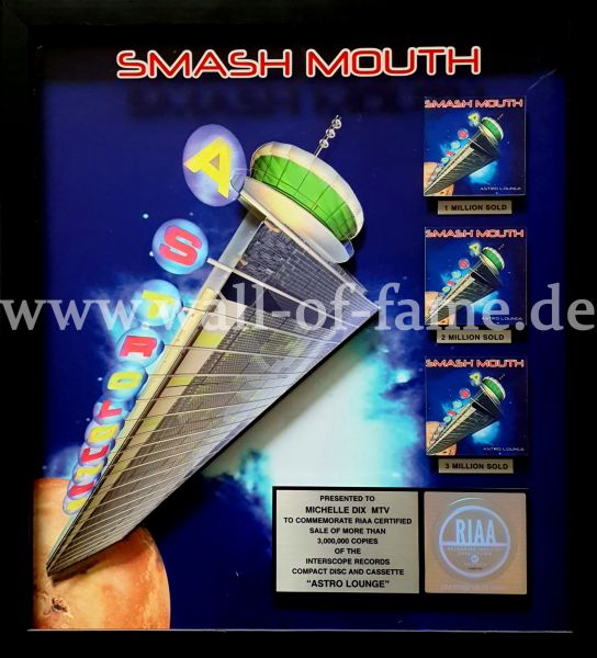 RIAA triple platinum award presented to Michelle Dix of MTV for the sale of more than 3 million copies of the Interscope Records album Astro Lounge the USA. EUR 240,-