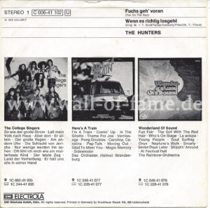 Single Fuchs Geh Voran by the Scorpions. In 1975 The Scorpions recorded a cover version of Sweet´s worldwide number one hit Fox On The Run in german language under the pseudonym The Hunters. By the time The Scorpions became successful worldwide this record gained the attention of record collectors and is extremely rare nowadays. Excellent condition, EUR 450,-