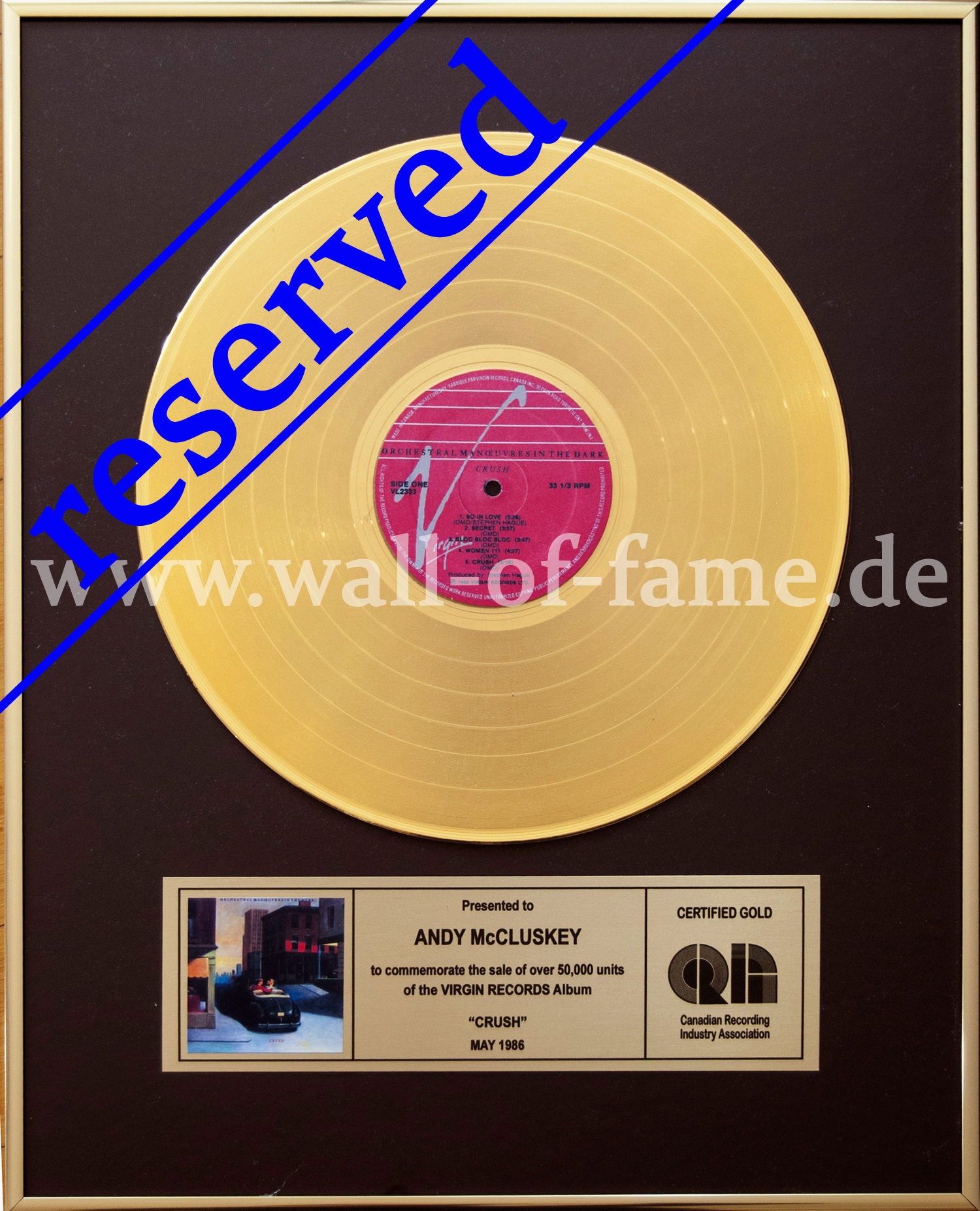 CRIA Gold Award, verliehen an Andy McCluskey für 50.000 verkaufter LP’s des Virgin Records Albums Crush in Kanada. EUR 1150,-