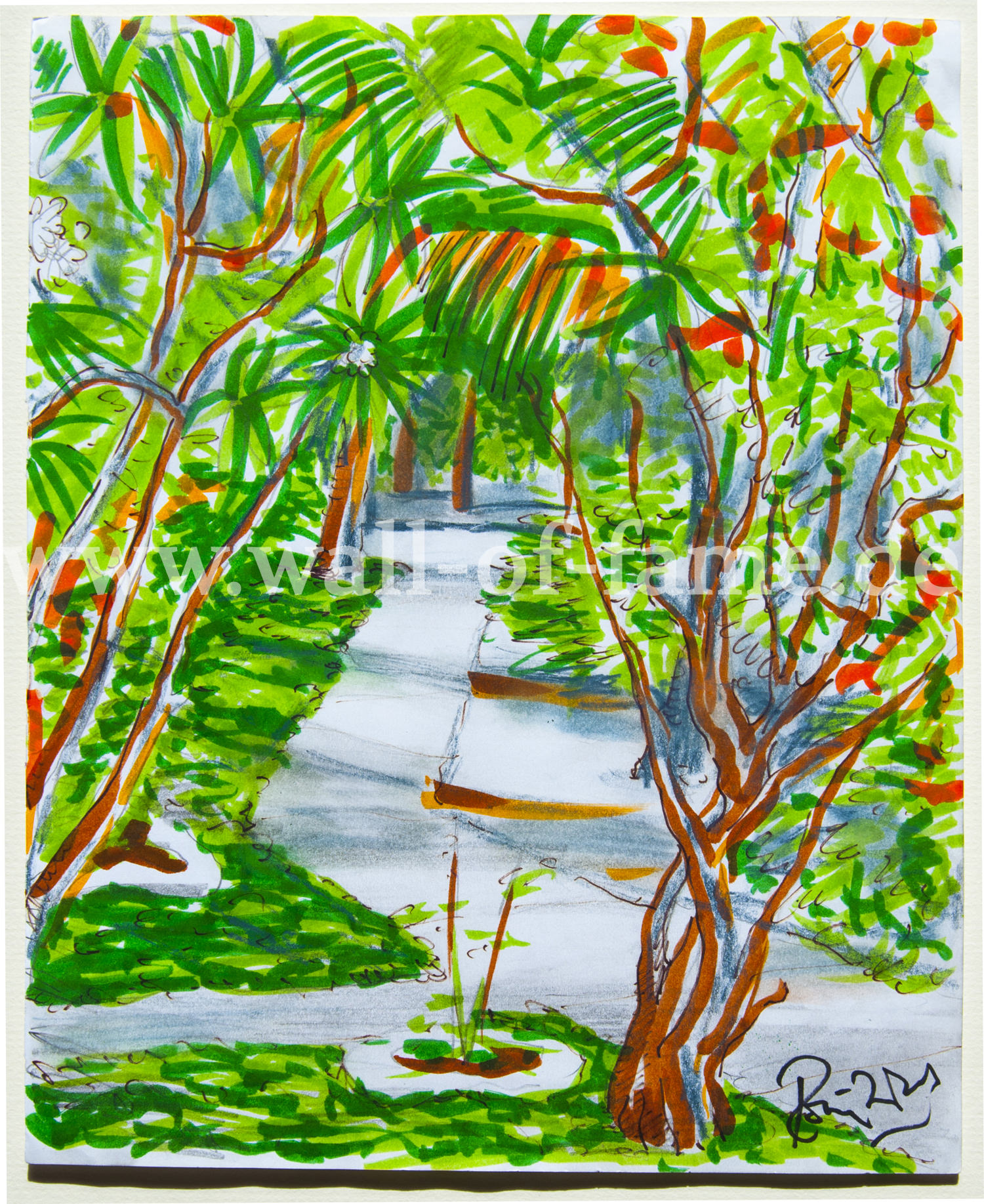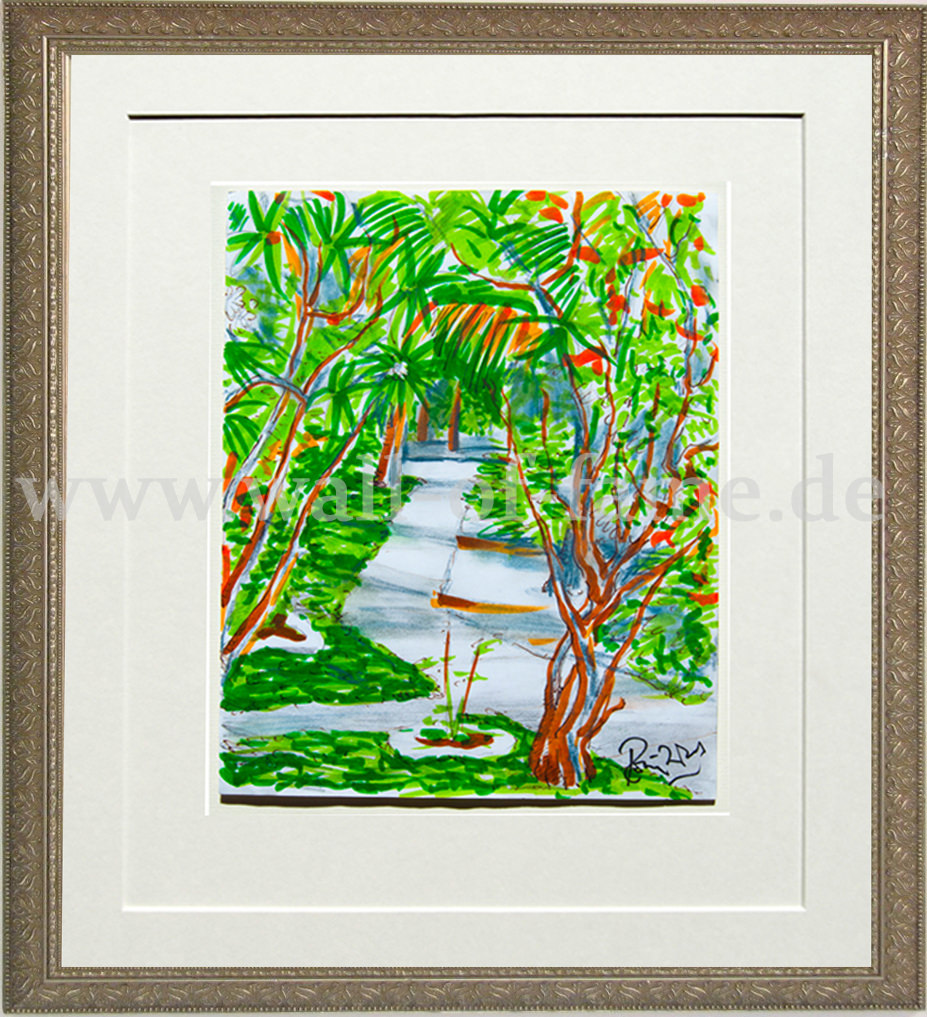 Original Zeichnung „Garden“, trees with path von Ron Wood, Farbstift und Wasserfarbe auf Papier, 30x24cm, auf Wunsch mit Rahmung, EUR 6500,-