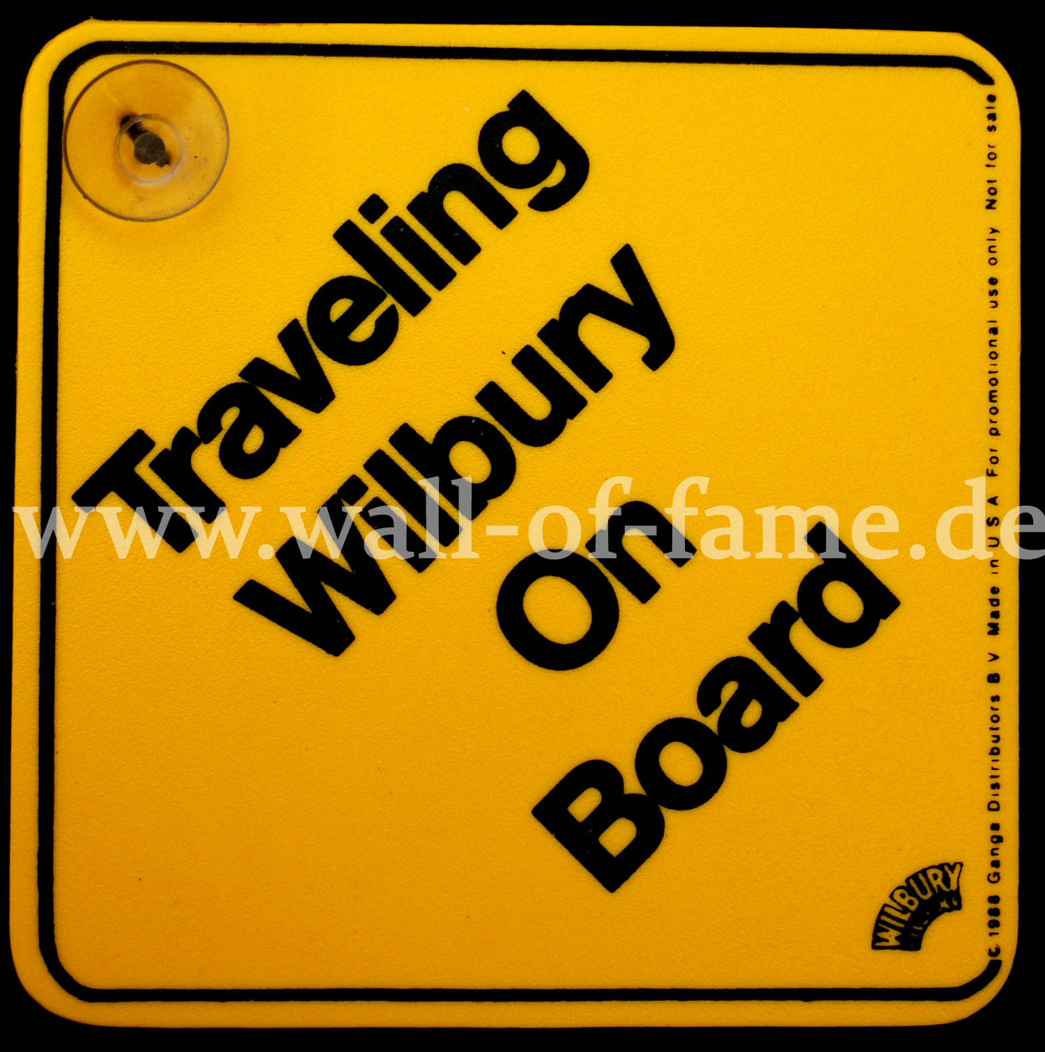 Traveling Wilburys Schild mit der Aufschrift „Traveling Wilbury On Board“. Zur Befestigung an Glasscheiben mit Saugnäpfen. Das Schild wurde ausschließlich zu Promotion Zwecken verteilt und war ursprünglich käuflich nicht zu erwerben. EUR 100,-